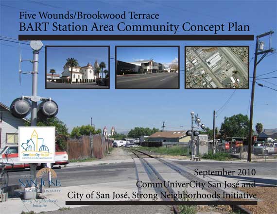 Public Vision Research, in partnership with CommUniverCity San José and the Five Wounds/Brookwood Terrace community, developed a conceptual plan for transit-oriented development in the vicinity of the future Alum Rock BART Station in San Jose, California. A series of dynamic workshops were conducted with community members to help define their vision for the BART station area. The plan include the redevelopment of the San Jose Steel site and other industrial land in conjunction with the BART extension, the creation of a town square at the San Jose Steel site, the revitalization of East Santa Clara Street (between Coyote Creek and Highway 101), the development of a trail along the former Union Pacific ROW, and a neighborhood-wide parking strategy. Click to download: Five Wounds/Brookwood Terrace BART Station Area Community Concept Plan (2010)